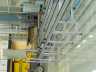 Kompletní stavba nového transfer systémuŘízení transfer systému nevyžaduje žádné speciélní vlastnosti. Jedná se o klasický ovál, kde palety jezdí pouze dokola. Pracoviště jsou na nebo vedle pásu. Linka vyrábí dva rozdílné typy světlometů a vyžaduje dva rozdílné typy palet. Proto je uvnitř vytvořen odkládací pás pro nepoužívané palety. Podle nastaveného typu linka automaticky vymění tyto palety. Další zvláštností je vypalování čárového kódu přímo na domeček světlometu. |